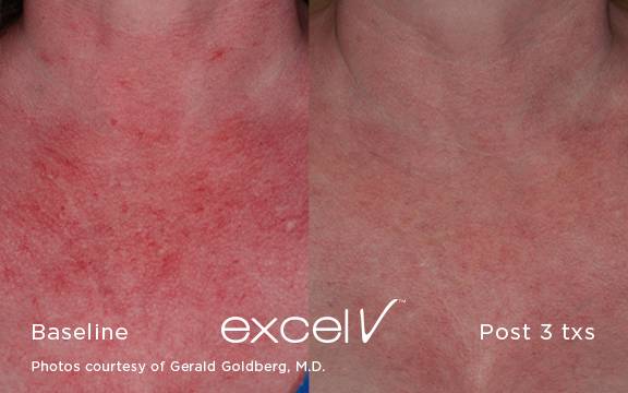 The Excel V™ Laser system is the newest laser device by CUTERA®, and it provides exceptionally flexible and effective treatment of a wide range of both pigment and vascular concerns. Some common conditions this laser is used to treat include rosacea, sun spots, lentigos or freckles, telangiectasias (spider veins), venous lake, cherry angioma, scar redness, poikiloderma, and more! Patients can see noticeable improvement after only one session, but additional treatment may be necessary depending on the extent of correction required.